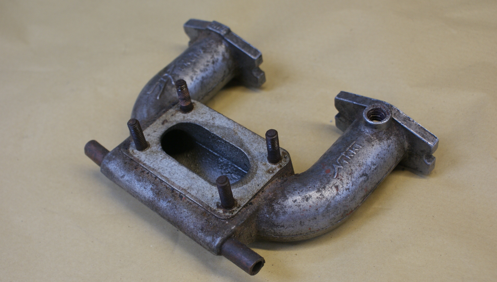 Bead blasting uses tiny beads of glass to clean components. We use it primarily for non-ferrous castings, such as cast aluminium intake manifolds, an example is shown.